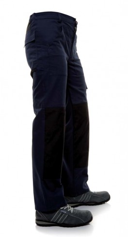 Pantaloni uomo dotati di rinforzi in Cordura® alle ginocchia, rinforzi dietro in cordura, taschino portametro a destra, tascone laterale a sinistra chiuso con bottoni a pressione, tasca posteriore destra con aletta, elastico regolabile in vita, tasche davanti applicate.